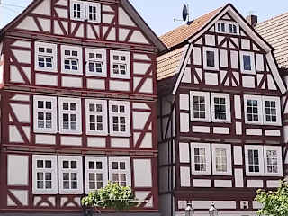 Wir hatten unseren Bummel über den Marktplatz von Homberg Efze sehr genossen. Am Marktplatz befinden sich viele sehenswerte Bauwerke (überwiegend Fachwerkhäuser). Direkt am Marktplatz legten wir eine Pause bei einem kleinen Bistro ein (wir saßen dort auf der Terrasse des Bistros mit Blick über den Marktplatz hinweg).