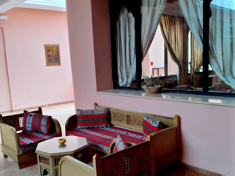 Gehen Sie direkt in die Medina- vom Show- Platz mit der Bühne aus gehen Sie geradeaus und nach kurzer Zeit finden Sie das kleine Café auf der linken Seite, in dem ein - zuegegeben sehr kleiner Mann- bedient- das ist wirklich ein Erlebnis- traditionell maruisches Café im Herzen der Medina... ich kann den Pfefferminztee sehr empfehlen ;)