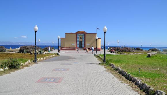 Das zwischen 1934 und 1936 erbaute Meerwasseraquarium liegt am nördlichsten Punkt von Rhodos-Stadt. Bis 1945 diente es als biologisches Institut, danach als Forschungszentrum und Museum. Im Keller wird in 40 Wasserbecken die Unterwasserwelt des östlichen Mittelmeers präsentiert. Die Aquarien, die denselben Boden (Kieselsandgemisch) aufweisen wie das offene Meer vor der Tür, sind in eine künstliche Grotte integriert. Highlights sind -allein wegen ihrer Größe- die Wasserschildkröten und die Rochen. Das Museum im Obergeschoss zeigt u.a. Muscheln, Schwämme, Korallen sowie präparierte Tiere wie Seehunde, Schildkröten, Haie und Wale. Öffnungszeiten und Eintrittspreise siehe Homepage: http://rhodes-aquarium.hcmr.gr/