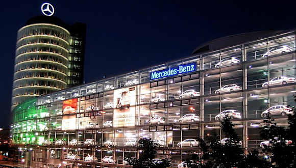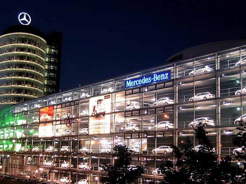 Im Winter verwandelt sich die Seite zum Mittleren Ring von dem sehr großen Autohaus in einen Adventskalender. Jeden Tag wird ein "Fenster" mit einem anderen Benz dahinter geöffnet. Gut zu sehen von der Donnersberger Brücke. Die Verkaufsfläche ist riesig und es stehen über 500 Fahrzeuge auf über 6 Ebenen. Ein Verwaltunggebäude, ähnlich einem Turm ist mit 13 Stockwerken für Münchner Verhältnisse sehr hoch und man hat von der Konferenzebene einen herlichen Ausblick. Es gibt oft Ausstellungen, z. B. zu Designstudien, das Maybach-Center, einen Merchandising-Shop und ein Café. Sehenswert ist die Architektur des mit Glas überzogenen Gebäudes, die Größe der Verkaufsfläche mit dem reichhaltigen Angebot und die Aussicht (kostenlos) vom letzten Stockwerk! DaimlerChrysler AG Niederlassung München Arnulfstr. 61 80636 München http://www. muenchen.mercedes-benz. de