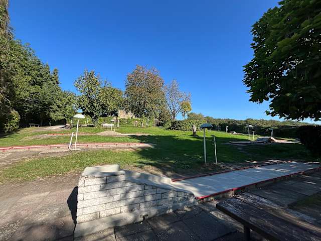 Wir waren im August mit unserem Patenkind hier eine Runde Minigolf spielen. Der Platz ist zwar schon etwas in die Jahre gekommen, jedoch konnten wir hier in Ruhe für uns zu einem günstigen Preis spielen. Vor Ort war kein Mitarbeiter, jedoch konnte man das Geld einfach in einen Briefkasten schmeißen und sich die Schläger, Bälle und Punktetabelle einfach nehmen. Wir hatten viel Spaß und können es jedem empfehlen. Zudem hat man nebenan im Burgrestaurant eine schöne Aussicht bei Getränken und Speisen.