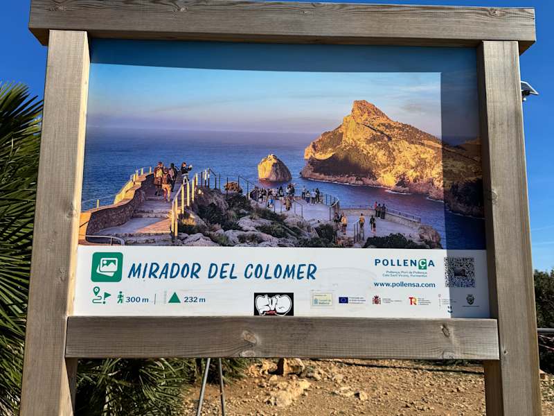 Dieser großartige Aussichtspunkt mit mehreren Plattformen zeigt den Touristen die herrlichsten Aussichten des Cap Formentor. Leider kann man seit dem Frühjahr 2022 diese Route mit dem Mietwagen tagsüber nicht mehr anfahren. Schon seit dem Jahr 2018 war die Fahrt im Privatwagen nicht mehr in der Zeit von 7°° Uhr bis um 19°° Uhr möglich. Heute ist die Fahrt von 7°° Uhr bis 22.30 Uhr verboten und wird hart bestraft. Es ist jedoch möglich mit einem speziellen Bus Nr. 334 vom Hafen von Pollenca bis hin zum Cap Formentor zu fahren. Wer schon einmal dort war, weiß wie es für ungeübte Fahrer ein mutiges Abenteuer war, diese schmale und kurvenreiche Straße zu nehmen. Staus und viel zu wenige Parkplätze machten einen Besuch nicht leicht. Der ADAC hat einen Bericht ins Netz gesetzt, Thema Cap Formentor. Am Mirador Es Colomar konnten wir aussteigen, dort ist auch zunächst ein Denkmal des Erbauers dieser Straße, wird aber kaum beachtet, denn jeder will weiter zu den Aussichtsplattformen. Der Fußweg ist leicht ansteigend, aber für fast alle begehbar. Oben angekommen, ist es schon atemberaubend über die vielen Aussichten. Die Busse fahren ca. 20 mal hinauf, bis 19°° Uhr. Da gibt es dann Leichtsinnige, die trotzdem fahren, wie zu lesen ist, hagelten schon 6700 Anzeigen. man spricht von € 200.-