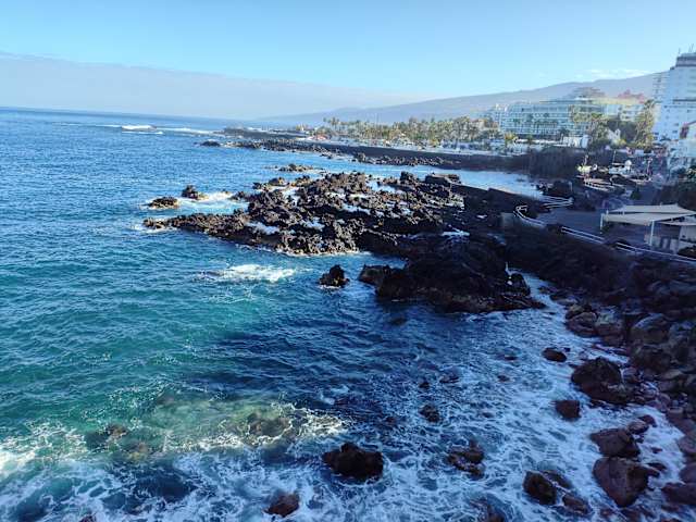 Dort, wo die Calle Quintana auf die Calle de Santo Domingo trifft und wo man zur Calle de San Telmo kommt, hat man einen tollen Ausblick auf die Küste und den Atlantik. Besonders beeindruchend ist dies, wenn die großen Wellen in die kleine Bucht „rollen“, diese sich dann an den Felsen brechen und die Gischt mehrere Meter hoch schießt. Es ist zweifellos mein Lieblingsaussichtspunkt in Puerto de la Cruz.
