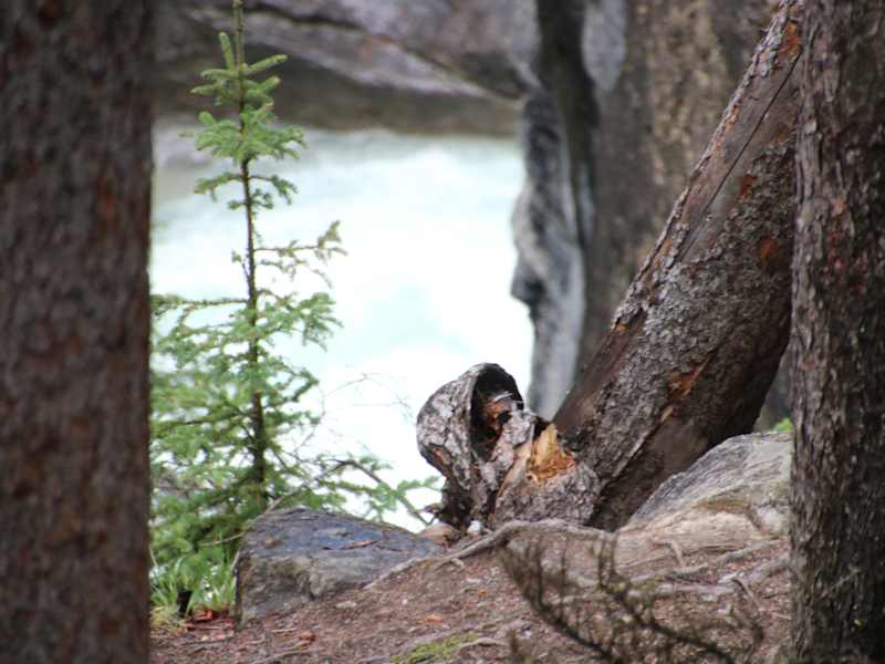 Es lohnt sich einen kurzen Stopp am ausgeschilderten Parkplatz zum Mistaya Canyon zu machen. Der Parkplatz ist direkt am Icefield Parkway und war nicht übermäßig besucht. Ein kurzer Fußweg (ca. 500 m) führt bergab zu dem Canyon. Von einer Brücke aus sieht man den anyon mit dem tief eingegrabenen Fluss zuerst. Der Mistaya River hat sich hier tief in die Felsen gegraben, fast senkrecht und kurvig sind die ausgewaschenen Felswände. Etwas hinter der Brücke kann man nah an den Canyon herantreten, es gibt keine Absperrungen, also Vorsicht.