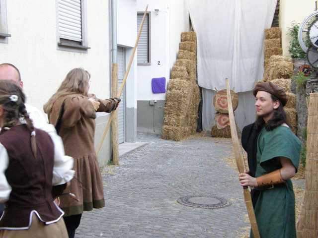 Jedes zweite Jahr verwandelt sich über das Pfingstwochenende die schöne und alte Stadt Oberwesel und lässt das Mittelalter lebendig werden. Auf dem mit Stroh bedeckten Kopfsteinpflaster wandeln, spielen oder arbeiten fast (oder inzwischen über) tausend in mittelalterliche Gewänder gekleidete Bürger, Ritter, Spielleut, Gaukler, Künstler und Handwerker aller Art: Bäcker, Besenbinder, Drechsler, Färber, Küfer, Lehmbauer, Schnapsbrenner, Steinmetze, Stellmacher, Töpfer, Wagner, Weber, Weinschröter bis zum Zeitler (Imker) und Zimmerleuten. Mit erstaunlichem handwerklichen Können und Geschick werden von teilweise über 80-jährigen „Senioren“ Gebrauchsgegenstände aus Leinen, Holz, Reisig oder Ton gefertigt, Fachwerke errichtet oder aus rohem Stein kunstvolle Ornamente gemeißelt. Dabei zählt das kleine Städtchen über kaum mehr als 3. 000 Einwohner. Allerdings verfügt es über einen bemerkenswerten „Verein zur Erhaltung mittelalterlichen Brauchtums in Oberwesel“, dessen 150 Mitglieder um den 9-köpfigen Vorstand sich bei jedem Spectaculum wieder übertreffen eine in jeder Hinsicht professionell organisierte Veranstaltung ins Leben rufen. Fast alle halbe Stunde findet auf einem der fünf Plätze ein Künstlerauftritt statt: von der „Jonglage“, „Gaukeley“, „Hexerey“ und „Narretey“ bis zur Artistik, Tanz, Zauberei und natürlich Ritterkämpfen professioneller Kaskadeure. Mehrere wirklich gute Gesangs- und Musikgruppen sorgen für den passenden musikalischen Rahmen. Die absoluten Highlights sind für mich die Auftritte von „Tandaradei“ mit der perfekten Beherrschung mittelalterlicher Musikinstrumente und natürlich der jedes Mal spektakuläre Auftritt von „Furunkulus“ mit ihrer im wahrsten Sinne des Wortes „Brachialen Musik“. Wenn diese inzwischen sehr bekannten Gruppen auftreten (je drei Mal täglich), wird es eng, denn sie haben eine begeisterte Fan-Gemeinde. Mit dem Eintritt von 10,- Euro erhält der Besucher neben einen übersichtlich gestalteten Programm- und Lageplan einen Tonbecher zur persönlichen Nutzung. Denn es gibt weder Plastikbecher, Flaschen, Gläser, Dosen oder andere neuzeitliche Utensilien, dafür Speisen im Brotteig oder Lebkuchen in kleinen Leinentüchern als Servietten. Seit 24 Jahren gibt es das Spectaculum und die wohl größte und professionellste Veranstaltung ihrer Art wird jedes Mal spektakulärer. Für mich ist diese Veranstaltung jedes Mal Anlass, einmal mehr ins romantische obere Mittelrheintal zu fahren. Angenehm sind die gute Verkehrsanbindungen, die vielen Parkplätze und die sorgfältige Organisation. Vor allem beeindruckt die spürbare Begeisterung der agierenden Stadtbewohner in der historischen Stadtkulisse. Die nächste Veranstaltung findet (leider) erst Pfingsten 2010 statt; Oberwesel kann aber jederzeit besichtigt werden.