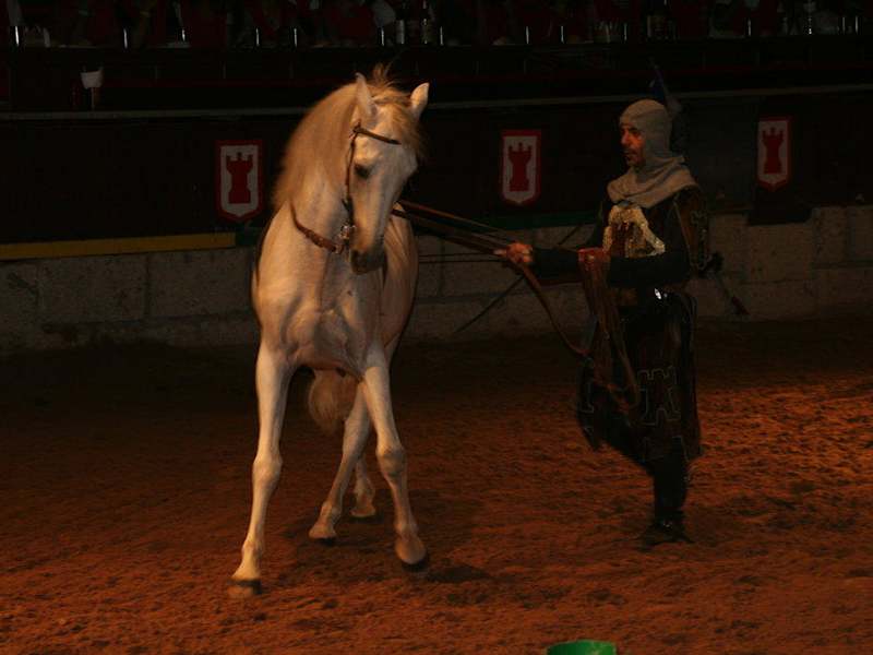 Das mittelalterliches Turnier war sein Geld wert. Wir haben zu Beginn alle einen Ritter zugewisen bekommen, unser war der gelbe Ritter. Wir haben alle einen gelben Umhang bekommen. Im Schloss selbst saßen alle Mannschaften, also Gelb, Grün, Rot usw. zusammen. Die Ritter wurden von uns angefeuert, super Stimmung. Es gibt vor dem Turnier eine sehr schöne Pferde und Falken Show. Das Essen ist im Preis inklusive, es gab Suppe, Hähnchenschenkel, Steak und Kartoffeln (wohl gemerkt, es wurde mit den Fingern gegessen) und als Nachtisch gab es Pudding, hierfür haben wir aber einen Teelöffel bekommen. Bevor wir in die Arena kamen wurden wir noch mit dem König fotografiert und später auch in der Arena. Ich glaube wir haben pro Bild 4,-€ bezahlt. TIPP: Ich habe die Karten im Internet gebucht und 10% gespart. Wir sind aber auch mit unseren Mietwagen hingefahren.