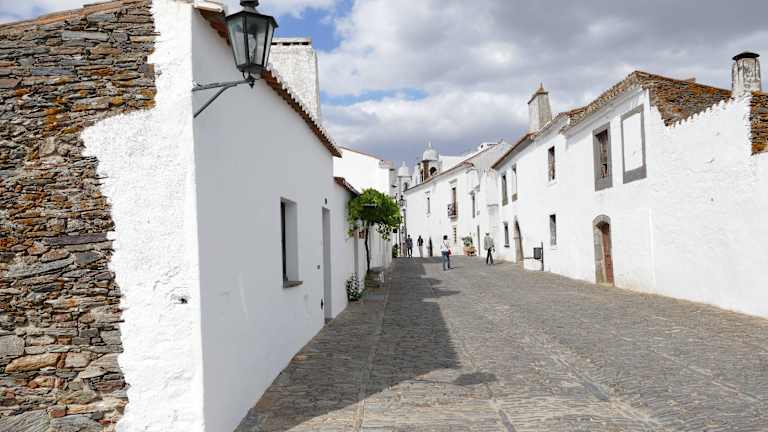 Das Bergdorf "Monsaraz", eine der ältesten Siedlungen im Alentejo, liegt im Osten der Region Alentejo auf einer Felsformation über dem Rio Guadiana nahe der Grenze zu Spanien. Die Gegend ist seit prähistorischer Zeit bewohnt. Dies bezeugt eine Vielzahl von megalithischen Formationen in der Umgebung. Auch zu Zeiten der Römer, Westgoten und Mauren lebten hier Menschen. Das mittelalterliche Städtchen hat es verstanden, sich seinen jahrhundertealten Charme zu bewahren. Der Ort ist auch noch heute vollständig von einer Festungsmauer umgeben. Das Ortsbild wird geprägt von engen unregelmäßigen Kopfsteinpflastergassen, die von strahlend weiss gekalkten niedrigen Häusern aus Schiefer gesäumt werden. Sehenswert sind - das Castelo de Monsaraz aus dem 14. Jahrhundert, von dem man eine spektakuläre Aussicht auf das Dorf, den Barragem do Alqueva und das Tal des Guadiana hat, - die Kirche "Igreja de Nossa Senhora da Lagoa" aus dem 16. Jahrhundert, - die Kirche "Igreja da Misericórdia" aus dem 16. Jahrhundert, - das Museu do Fresco mit einem seltenen Fresko aus dem 14. Jahrhundert und - der Pelourinho (Pranger) aus dem 18. Jahrhundert.