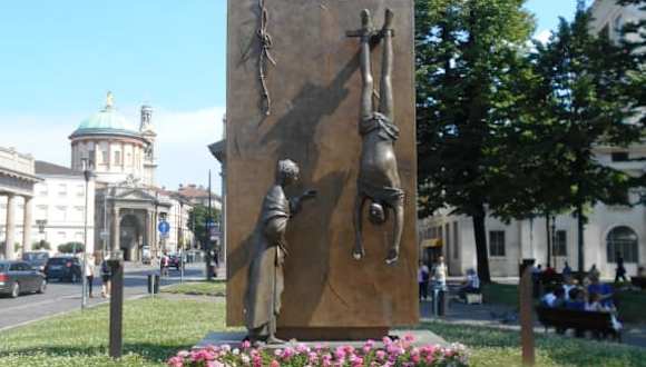 Zur Erinnerung an den "Tod durch Gewalt" wurde 1977 dieses Denkmal aus Bronze errichtet, das auf der Hauptseite einen jungen Mann zeigt, der getötet wurde und kopfüber hängt; daneben einer Frau - Frau oder Mutter - die überlebt. Das Denkmal steht an prominenter Stelle in der Nähe der Porta Nueva, neben sich auch das Denkmal zur Erinnerung an die Gefallenen des 1. Weltkrieges steht, der „Turm der Gefallenen“.