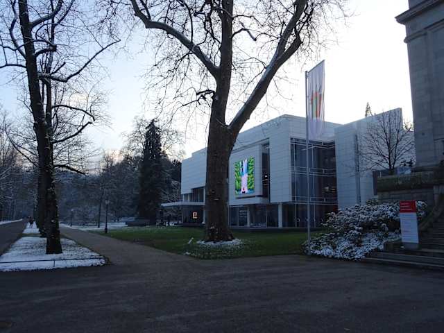 Bei dem 2004 eröffneten Gebäude handelt es sich um ein privates Kunstmuseum. Bei der Stadtführung wurde erklärt, dass das Gebäude an dieser besonderen Stelle nur gebaut werden konnte, weil für die Staatliche Kunsthalle daneben bereits eine Genehmigung für einen Erweiterungsbau vorlag. Daher sind die Gebäude wohl auch miteinander verbunden. Man sieht schon einige Kunstwerke durch die große Glasfront von außen. Bei der aktuellen Ausstellung wurden Kunstwerke direkt auf die Wände gemalt. Sehenswerte Ausstellung.