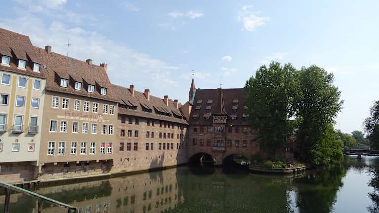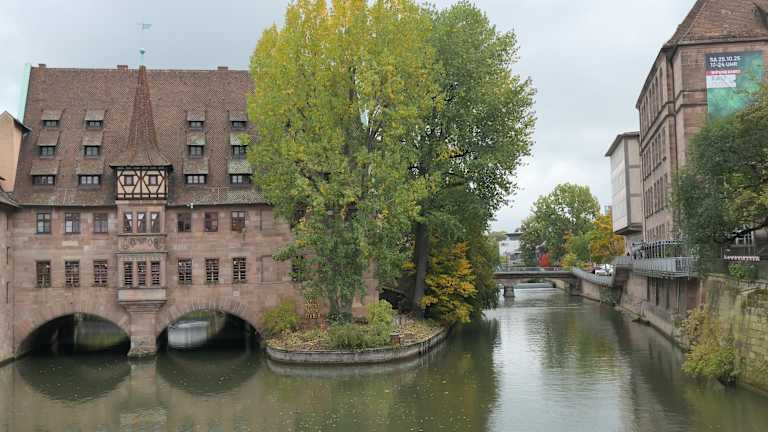 Meine Lieblingsbrücke in Nürnberg ist die Museumsbrücke mit dem tollen Blick auf die Pegnitz und zum Heilig-Geist-Spital, das teilweise über die Pegnitz hinweg erbaut wurde. Aber auf der Museumsbrücke, einer Fußgängerbrücke, ist auch immer viel Betrieb, da sie eine wichtige Verbindung vom südlichen Stadtteil St. Lorenz in den nördlichen Stadtteil St. Sebald ist und dadurch zu einem Nadelöhr dieser Verbindung wird.