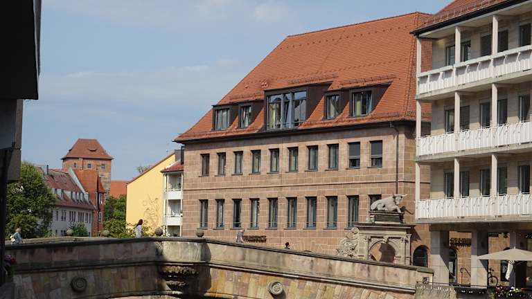 Kommt man mit dem Zug nach Nürnberg und läuft zum Hauptmarkt kommt man über die Museumsbrücke. Hier bieten sich verschiedene schöne Fotomotive.