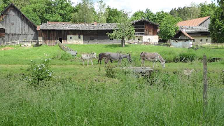 Nach unserer Wanderung in Neuschönau (Baumwipfelpfad) fuhren wir weiter nach Tittling zum bekannten Museumsdorf. Das Museumsdorf ist eingetragen in die Liste 'National wertvollen Kulturgutes'. Da schon Mittagszeit war, kehrten wir im Museums-Wirtshaus Mühlhiasl ein. Der Gasthof Mühlhiasl ist ein Dreiseithof aus dem Jahre um 1840. Der Mühlhiasl (1753 – 1805) war angeblich Weissager und Prophet in dieser Gegend, weshalb man ihn auch den Waldpropheten nannte. Die Geschichten des Mühlhiasl sind heute noch sehr verbreitet im Bayrischen Wald. Das Museums-Wirtshaus Mühlhiasl mit Sonnenterrasse bot traditionelle, bayerische Hausmannskost an. Aufschlussreich fand ich die im Gasthaus ausgestellten Wirtshausutensilien wie z.B. Bierkrüge und Schützenscheiben. Während unseres Aufenthalts war auch eine größere bayrische Trachtengruppe als Gast beim Mühlhiasl. Nach dem Mittagsessen machten wir uns auf dem Weg durch das Museumsdorf. Das Museumsdorf umfasst auf 25 ha über 150 Gebäude aus der Zeit von 1580 bis 1850 und eine volkskundliche Sammlung mit 60.000 Objekten. Das Museum wurde 1974 von Georg Höltl mit der Restaurierung der 500 Jahre alten Rothaumühle gegründet. Bekannt ist Georg Hötlt als Omnibusunternehmer und Begründer von Rotel Tours. Die Gebäude im Museumsdorf Bayerischer Wald stammen aus dem gesamten Bayerischen Wald, von der Donauebene bis zum Böhmerwald und vom Wegscheider Land an der österreichischen Grenze bis zum Oberen Bayerischen Wald bei Cham. Sieben Gebäude kommen von rechts der Donau. Zu sehen sind u.a. Bauernhäuser, Tagelöhnerhäuser, Kapellen, Werkstätten und Mühlen und die älteste Volksschule Deutschlands. Die älteste Dorfschule (1666) Deutschland stammt aus Simbach bei Landau. Es war schon interessant, wie die Schule vor 350 Jahren aussah. Das Schulhaus diente auch als Rathaus, Wohnung des Lehrers und als Gefängnis. Besonders erwähnen sollte man die umfassende volkskundliche Sammlung im Museumsdorf wie z.B. Bauernmöbel und Hausrat, Kleidung, landwirtschaftliche Geräte, Schmuck, Glasarbeiten, Fuhrwerke und Sakralgegenstände. So wurden z.B. in der Rothaumühle im Gebäude Nr. 44 in 106 Vitrinen eine umfassende Sammlung von "Zeugnissen der Volksfrömmigkeit" ausgestellt. Viele dieser Andachtsgegenstände waren früher fast in jedem bäuerlichen und kleinbürgerlichen Haushalt zu finden. Was wir besonders originell fanden, waren die Haustiere wie Esel, Gänse, Hühner, Schafe und Ziegen im Museumsdorf. Besonders die jungen Esel haben es den Gästen angetan. Peter Höltl und seine Familie finanzieren laut eines Besuchers, das Museumsdorf aus eigenen Mitteln. Ich kann den Besuch des Museumsdorfs in Tittling auf jeden Fall weiterempfehlen.
