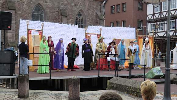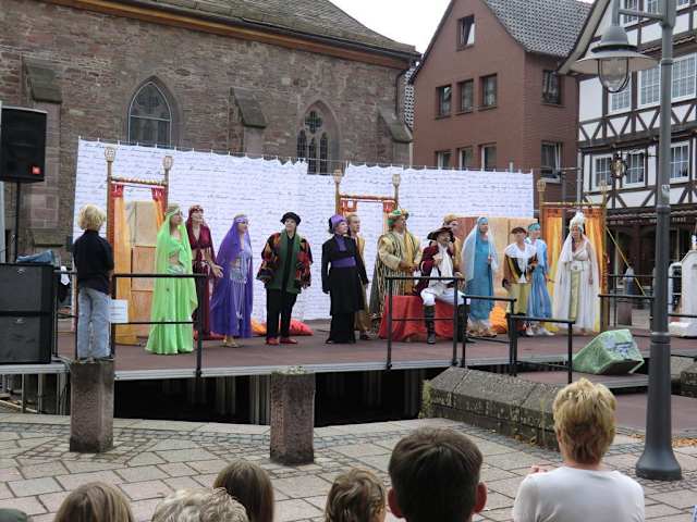 Von Mai bis September wird an jedem 2. und 4. Sonntag um 15 Uhr Münchhausen- Das Musical aufgeführt. Die Veranstaltung findet in der historischen Altstadt auf einer Bühne hinter der Kirche in Bodenwerder statt. In 50 Minuten erzählt das 12-köpfige Ensemble, an der Spitze "Der Lügenbaron - Hyronimus von Münchhausen" einige seiner Geschichten mit viel Schwung. Bodenwerder und Münchhausen, das gehört einfach zusammen! Ich wünsche euch den Spaß, den wir hatten. Das Stück ist sowohl für Kinder, als auch Erwachsene sehr kurzweilig.