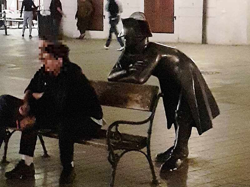 Über eine der Bänke am Altstädter Ring beugt sich die Figur eines Soldaten in napoleonischem Outfit, der einem über die Schulter sieht, wenn man sich hier hinsetzt. Tatsächlich zog Napoleon 1805 mit einer Armee von 9.000 Infanteriesoldaten und 300 Reitern auf der Durchreise durch die Straßen von Bratislava. Die Figur des Soldaten ist aber wohl weniger eine Erinnerung an dieses Ereignis als eine etwas lockere Art, die Altstadt durch Kunst zu beleben. Man findet über die Stadt verteilt verschiedene zum Teil auch kuriose Skulpturen, zum Beispiel einen Kanalarbeiter, der aus einem offenen Gully guckt. Dies alles sind beliebte Fotomotive.