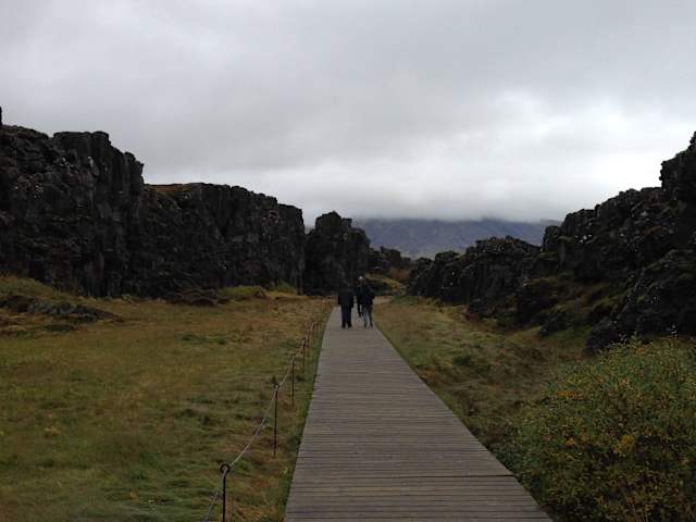 Þingvellir am See Þingvallavatn gelegen ist der Ort an dem bereits im 10. Jahrhundert die jährliche gesetzgebende Volksversammlung, das Alþing, abgehalten wurde. Þingvellir ist zusammen mit den Geysiren und dem Gullfoss teil des "golden Circle" was leider eine Überschwemmung mit Touristen (busladungsweise) mitsichbringt. Desweiteren hat das Gebiet auch geologische Bedeutung. Es wird durchzogen von einer Grabenbruchzone (Riftzone) zwischen der Nordamerikanischen und der Eurasischen Platte. Durch das Auseinanderdriften bilden sich tiefe Risse und Spalten und formen die Almannagjá (Allmänner-Schlucht), die auf angelegten Wegen begangen werden kann. Zum 1000-jährigen Jubiläum der Volksversammlung (Alþing), wurde Þingvellir im Jahr 1930 ein Nationalpark, der im Jahre 2004 auch zum UNESCO-Weltkulturerbes wurde.