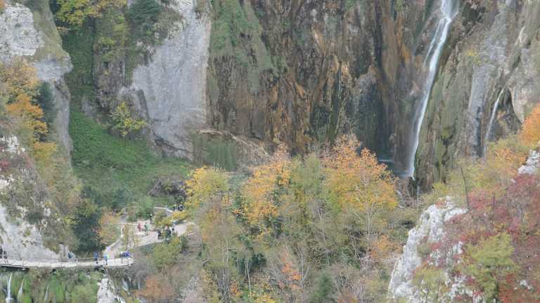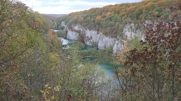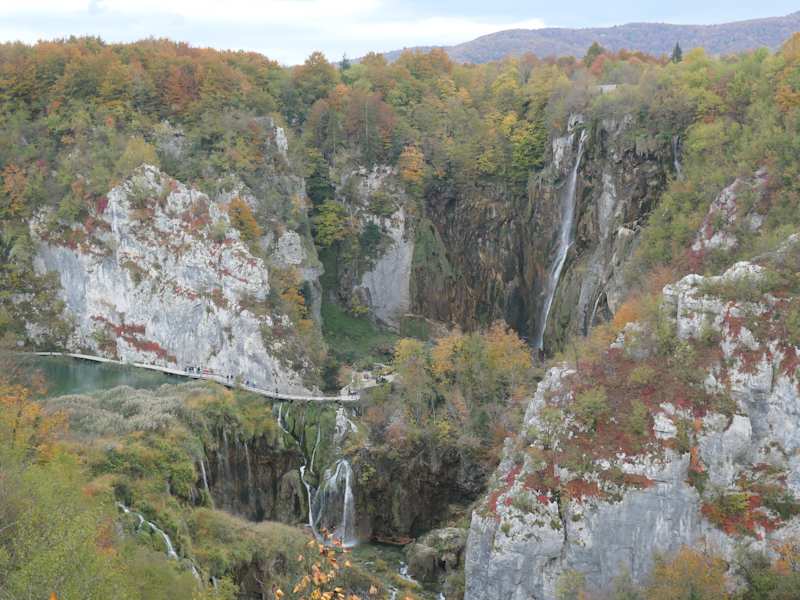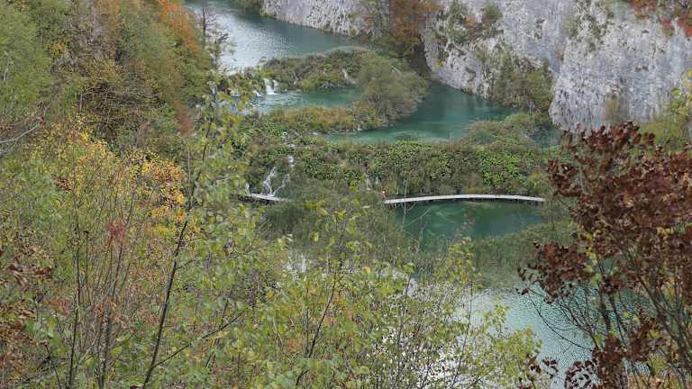 Der Besuch des Nationalparks Plitvicka Jezera (Plitvicer Seen) war der Höhepunkt unserer Busreise nach Kroatien. Die Fahrt von der Küste und der Eintritt zu den Plitvicer Seen (einschließlich Führung) war bereits im Gesamtpaket der Reise enthalten, sodass wir uns um nichts kümmern mussten. Die Plitvicer Seen, die in den 1960-er Jahren auch zu den Drehorten der Winnetou Filme gehörten, bestehen aus 16 Seen, die über Wasserläufe und Wasserfälle miteinander verbunden sind. Zudem ergießen sich größere und kleinere Wasserfälle von den Felswänden. Es ist eine fantastische Landschaft, durch die gut ausgebaute Wege (teils Holzstege) führen. Auch eine Fahrt mit dem Elektroboot über den Kozjak See, dem größten See der Plitvicer Seen, ist im Eintrittspreis für den Nationalpark enthalten, ebenso wie die Fahrt mit dem „Plitvicer Zug“ (einem Straßenfahrzeug mit Zugmaschine und geschlossenen Anhängern). Irgendwie hatte ich immer das Gefühl, dass gleich der echte Winnetou (Pierre Brice) und der echte Old Shatterhand (Lex Barker) auftauchen müssten.