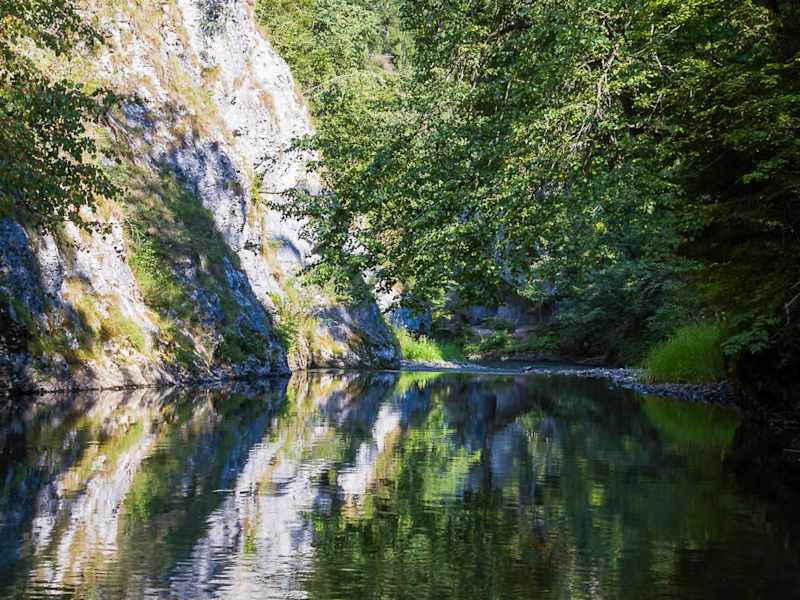 Der Nationalpark Slowakisches Paradies ( slowakisch Narodny Park ) befindet sich im östlichen Teil der Slowakei. Der Park erstreckt sich auf einer Fläche von 19763 ha und die Schutzzone beträgt 13011 ha. Im Jahr 1964 wurde der Narodny Park zum Landschaftsschutzgebiet erklärt und im Jahr 1988 wurde er laut Anordnung der slowakischen Regierung zum Nationalpark umkategorisiert. Der Nationalpark Slowakisches Paradies gehört zu den schönsten Natur- und Wandergebieten in der Slowakei und ist vor allem bekannt wegen seiner Schluchten, die bis zu 300 Meter tief sind. Der Ausgangspunkt unserer 2-stündigen Wanderung war der Parkplatz von Cingov. Cingov befindet sich im Tal des Flusses Hornad am Nordostrand des Nationalparks Slowakisches Paradies. Cingov gilt als idealer Ausgangspunkt für Wanderungen im Nationalpark. Am Eingang des Parks standen mehrere Wegsschilder für die Wanderer. In diesem Waldgebiet befanden sich auch noch mehrere Ferienhäuser. Ein Gedenkstein vom Jahr 1988 erinnert an die Eröffnung des Nationalparks. Wir gingen über eine kleine Brücke und dann entlang eines wildromantischen Gebirgsflusses. Unser Reiseführer erzählte uns unterwegs, dass etwa 90 % der Fläche des Nationalparks vom Wald bedeckt sind. Größtenteils besteht der Wald aus Buchen, Tannen, Fichten und Kiefern. Im Park sollen sich etwa 930 Pflanzenarten befinden, davon sind etwa 30 Arten geschützt. Bei der Wanderung durch das enge schluchtenähnliche Tal, kamen wir auch bei einem Wasserfall vorbei. Wir gingen bis zum Zusammenlauf zweier Gebirgsflüsse unterhalb vom Aussichtspunkt Thomashöhe. Dort legten wir eine kurze Verschnaufpause ein und dann ging es wieder auf dem gleichen Weg zurück zu unserem Ausgangspunkt. Die Bäche und Wasserläufe, die sich tief in den Karst gegraben haben, bilden die Hauptattraktion des Nationalparks. Eine leichte aber sehr interessante Wanderung in einer herrlichen Landschaft.