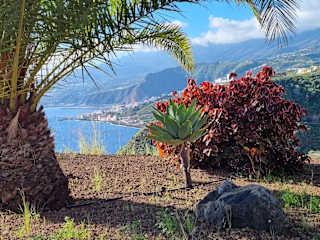 Startpunkt, dieser atemberaubenden Tour, ist Tijarafe und gelb/weiß PR.LP.12.2 markiert. Wir haben die Tour mit Natour gemacht, was sehr angenehm war, der Guide Jonas (Palmero) erklärte viel über Botanik und Geologie. Man sollte als Flachlandtiroler die Tour nicht unbedingt am anfang seines Urlaubs machen, da man von 850m höhe absteigt auf 0m und das ganze auch wieder hoch. Durch blühende Gärten geht es zunächst sanft bergab, dann aber steiler hinunter zur Poris da Candelaria , unter einem riesigem Felsüberhang ducken sich viele Wochendhäuser der Palmeros, die Stimmung ist phantastisch. Man kommt sich vor wie in einer anderen Welt,. Nach kurzer Rast, geht es dann steil bergauf auf einen Bergsattel, von dort in kurzen Serpentinen hinunter zur Playa del Jorando, auch hir befinden sich einige Wochendhäuser. Nach ausgiebiger Rast ging es dann nur noch Bergauf bis zum Örtchen El Jesus wo es ein e lecker Cervesa in der kleinen Brauerei gab. Alles in allem eine wuderbare aber auch sehr anstrengende Tour.