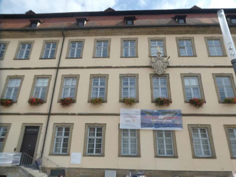 Das zwischen 1732 und 1737 als Priesterseminar erbaute Gebäude am Maximiliansplatz ist seit 1943 der Sitz vom Rathaus der Stadt Bamberg. Es ist ein mächtiges, wuchtiges Gebäude. Wenn man in der Hauptwachstraße bzw. am Maximiliansplatz ist, so kann man sich das Neue Rathaus sicherlich einmal ansehen, aber einen größeren Umweg würde ich deswegen nicht machen.