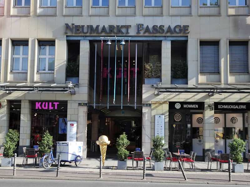 Genussvolles Shopping – das verspricht die Neumarkt Passage im Zentrum von Köln. Wer das überdachte Einkaufszentrum am Kölner Neumarkt für sich entdeckt findet dort exklusive Einzelhandels-Geschäfte: von handgefertigen Hüten, designorientierem Schmuck, saisonbezogenem Blumenschmuck bis hin zu bekannten Marken wie Steiff und Rosenthal. Ob nun Wohnungseinrichtung, Selbstbelohnung oder Geschenk – bei einem Bummel durch die Neumarkt Passage wird man sicher fündig und kann in schöner Atmosphäre entspannt einkaufen. Gastronomischen Genuss, vor dem großen Brunnen in der Passage sitzend, versprechen „kölsche Tapas“, mediterrane Küche und raffinierte Süßspeisen. Ein abwechslungsreiches Kulturangebot mit wechselndnen Kunstausstellungen sowie die einfache Erreichbarkeit mit dem KVB sowie Parkplätze – z.B. das Parkhaus der Kreissparkasse Köln – runden das Angebot ab. Homepage: https://neumarktpassage.de/