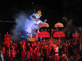 Die Balinesen richten Ihr Neujahrsfest nach dem Mondkalender aus. So wird Nyepi in einer Neumondnacht im März oder im April gefeiert. Drei Tage vor Nyepi, dem sogenannten Melasti-, Mekiyis- oder Melis-Tag, finden farbenfrohe Zereomien statt um die verschiedenen Götterabbildungen im Wasser rein waschen zu lassen. Am Tag vor Nyepi, dem Tawur Kesanga, finden in allen Dörfern große "Austreibungszeremonien" statt. Die in den Tagen, bzw Wochen zuvor gebastelten, beeindruckenden Ogogh-Ogohs (Monster oder böse Geister) werden dann in der letzten Nacht des alten Jahres mit viel Lärm verbrannt. Am Nyepi-Tag selbst herrscht dagegen absolute Ruhe. Niemand - auch kein Tourist - darf das Haus bzw. Hotelgelände verlassen. Ebenso dürfen am Abend keine Lichter entzündet werden. Sollten sich Dämonen zurückverirren sollen sie glauben, die Insel wäre ausgestorben, und unverrichteter Dinge wieder abziehen. Lagebeschreibung: Die Ogoh-Ogohs kann man am Tag vor Nyepi tatsächlich in jedem noch so kleinen Dorf sehen. Der Nachmittag ist dann mit unserem Karneval vergleichbar. Hinweis/Insider-Tipp: An Nyepi selbst bieten die Hotels Ihren Gästen besondere Aktivitäten innerhalb des Geländes an. In den Hotelzimmern darf abends bei verschlossenen Vorhängen auch Licht angemacht werden. Auch wenn die Balinesen an diesem Tag nicht kochen dürfen, die Hotels bieten Ihren Gästen selbstverständlich verschiedene Menüs an.