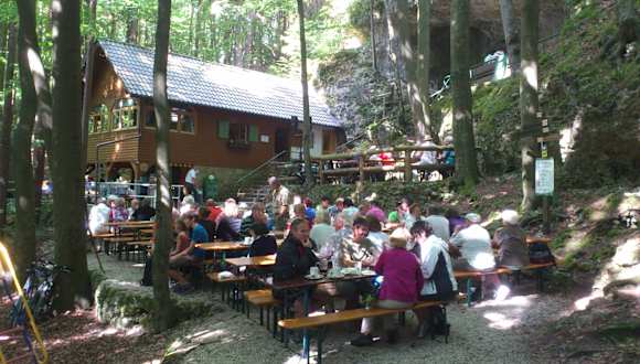 Wie in alten Zeiten! Die Tropfsteinhöhle ist nicht beleuchtet und die Führungen sind mit der Taschenlampe! Eine kleine Höhle mit den gewissen Flair! In der dazugehörigen Waldschänke gibt es auch nur Strom über einen Generator und das Wasser muss noch in Kanister nach oben gebracht werden bzw. es wird zum Kochen nur Mineralwasser verwendet! Es gibt superleckere Brotzeiten sowie Kaffee und Kuchen! Der Biergarten mitten im Wald ist ein Traum! Aber auch bei schlechten Wetter ist es in der Hütte, die mit einen Kachelofen beheizt wird und in der Laternen mit Kerzen für die Beleuchtung sorgen, so richtig gemütlich! Einfach bei jeden Wetter zu empfehlen, für Menschen die den Luxus der Natur schätzen!