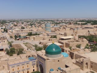 Das Pahlavon Mahmud Mausoleum ist eines der Sehenswürdigkeiten und Highlights der westusbekischen Stadt Chiwa. Es ist reich verziert mit wunderschönen Kuppeln und Fliesen und dem usbekischen Volkshelden gleichen Namens gewidmet, welcher zwischen 1247 und 1325 gelebt hatte und eine Art geistiger Führer zur damaligen Zeit war. Die petrolfarbenen, grünen und weißen Kacheln mit den Kuppeln sind ein äußerst schöner Farbkontrast zum sonst wüstenartigen, braunen Gebäudeton in Chiwa. Oft sieht man Brautpaare inklusiver "Gefolgschaft" in der Nähe des Mausoleums. Ein Besuch während der Hochzeit soll Glück für die Vermählten bringen. Ich würde den Besuch unbedingt empfehlen!