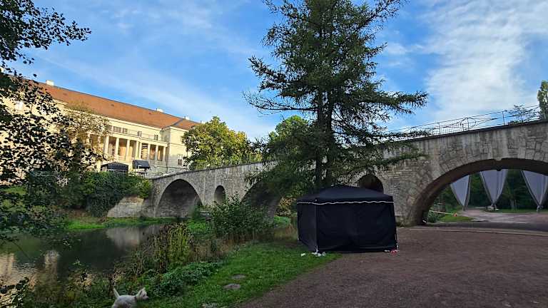 Wohnt man im Dorint Hotel so hat man nur Fußschritte zum Park an der Ilm, hier war ich öfters und ist wirklich gewaltig groß, aber voll geil gestaltet. Viele Ruinen sind vorhanden darunter auch die Tempelherrenaus, Gedenksäulen, ein Fluss fließt durch, tolle Brückenbauten, viel Rasen besonders in den Morgenstunden ein Joggingerlebnis pur. . Adresse: Ilmstraße, 99423 Weimar