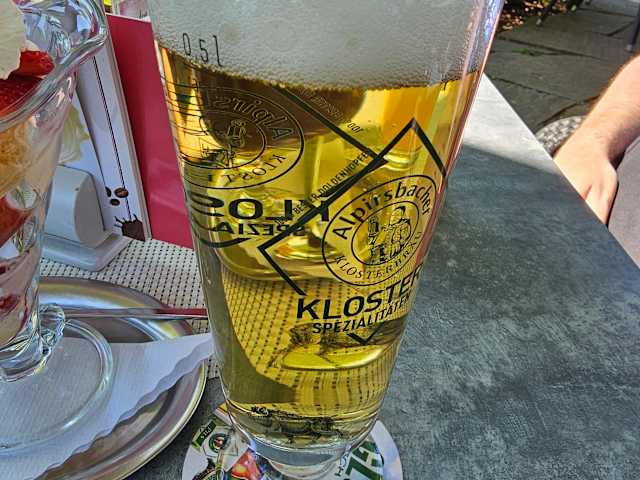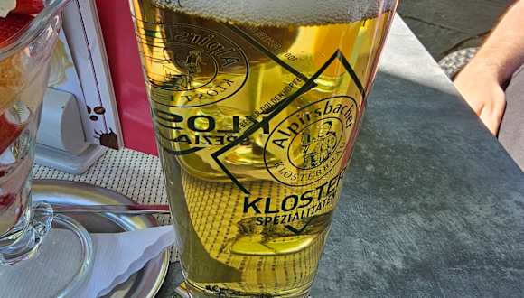 Das Parkcafe Stern von Königsfeld im Schwarzwald, liegt direkt im örtlichen Kurpark gelegen und hat eine ruhige ausstrahlende Atmosphäre. Vor Ort besitzt das Cafe verschiedene Räumlichkeiten, wie u.a.: a) das Cafe, b) die Terrasse, c) Haus des Gastes und d) das Nebenzimmer, in welchem man entsprechend speisen kann. Es gibt: • vielseitiges Angebot an Kuchen und Torten • kleine Speisekarte • Eisspezialitäten Das Cafe ist barrierefrei und hat eine idyllisch gelegene Terrasse, mit Blick auf den Kurgarten und den dortigen Brunnen. Nach Eintreten auf der Terrasse, wurden wir zunächst, durch das Personal, gebeten zu warten, da diese die Zuteilung der jeweiligen Tische vornahmen und zu diesem Zeitpunkt auf der Terrasse, alle Tische belegt waren. Nach einer kurzer Wartezeit, hat dann ein Gästewechsel an den Tischen stattgefunden und wir konnten auf der Terrasse Platz nehmen. Bei unserem Besuch haben wir gehabt: > Radler 0,5l für 4,60 € > Erdbeer-Becher für 8,50 € > Orangensaftschorle 0,3l für 4,20 € Eiskaffee für 7,50 € Zusammenfassung: Vor Ort ein schönes ruhiges Cafe im Kurgarten, welches überwiegend durch die ältere Generation, besucht wird, da man sich dort herrlich erholen kann, abseits des Strassenlärms und Trubel des Alltags.
