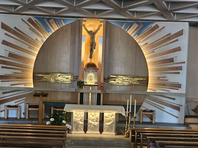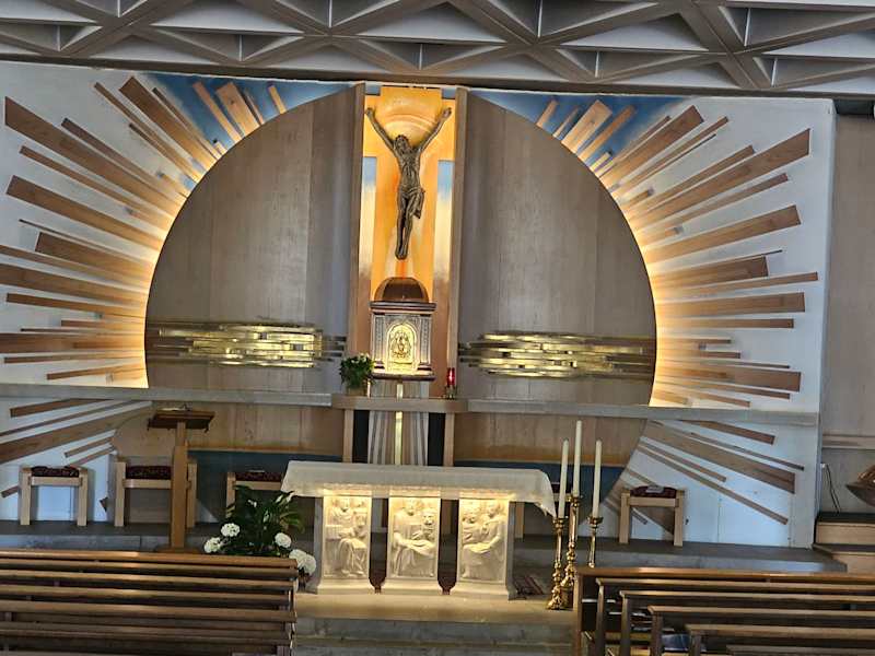 Ist eine sehr moderne Kirche finde ich, die Gottesdienste finden auch in deutscher Sprache statt und gehen alles über Lautsprechersysteme, wann das hängt hierbei außen aus. Die Sitzmöglichkeiten in der Kirche ist mehr einen Station nachgebaut nach unten versetzt. Katholische Kirche Adresse: Parco S. Giovanni Bosco, 35, Lignano Sabbiadoro UD, Italien Telefon:+39 0431 71279