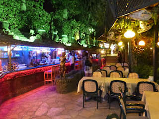 Die "PASAKÖY" - Bar in Sides Altstadt liegt mit seinem ruhigen Garten mitten im Trubel. Wenn man die Hauptstrasse Richtung Hafen hinuntergeht, ist sie nicht zu übersehen. Wer hier hineinkommt, findet sich in einem kleinen "Regenwald" wieder. Neben zahlreichen Pflanzen und Bäumen plätschert sogar ein echter Bach durch das Restaurant. Die urgemütliche Grünanlage stellt sich als kleine Oase dar, umringt vom hektischen Treiben des Touristenstädtchens. Die Speisekarte bietet neben kleinen Snacks und Erfrischungen eine breite Palette an türkischen Grillgerichten und Meeresfrüchten. Nachts strahlt die Beleuchtung aus den Bäumen heraus und sogar an Ventilatoren, befestigt an den Baumstämmen über den Köpfen der Gäste, wurde gedacht. Hier findet man ein wenig Entspannung!