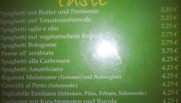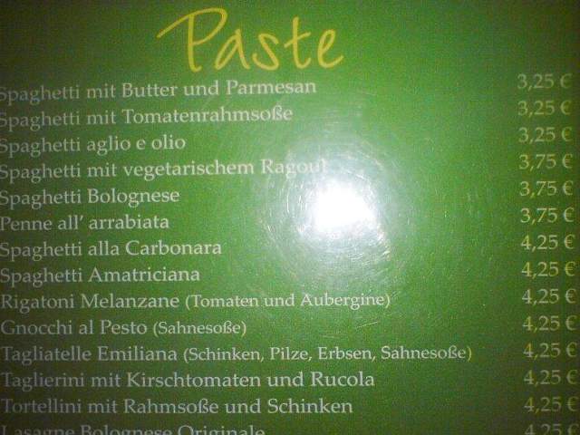 Das Pasta e basta ist im Stil eines Bistros eingerichtet. Die Qualität der Speisen ist gut, die Teller sind reichhaltig gefüllt und die Preise sehr günstig. Spaghetti Carbonara 4, 25 €, Gemischter Salat ( insalata mista ) 2, 75 € und ein Radler ( 0, 5 ltr. ) gibt es schon für 2, 60 €. Alles in allem ist das Preis-Leistungsverhältnis sehr gut. Man sollte allerdings keine allzu eine gemütliche Atmosphäre erwarten, das pasta e basta lässt sich nicht mit einem wirklichen Restaurant vergleichen. Dafür gibt es aber gute Qualität zum kleinen Preis. Man sollte schon sehr zeitig dort sein, da das Pasta e basta einen sehr großen Zuspruch findet und je später der Abend wird, umso voller ist das Restaurant.