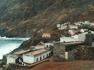 Das Fischerstädtchen Pontinha da Janela ist vor allem bekannt, als Ausgangspunkt von Küstenwanderungen zum 1886 erbauten Leuchtturm. Er diente den Seefahrern im Atlantik als Wegweiser zur Nachbarinsel Sao Vicente. Diese einfach zu gehende Tour wird sehr häufig von Reisegesellschaften angeboten. Wenn das Wetter erlaubt, sieht man auch einheimische Fischern in ihren farbenfrohen Booten aufs Meer hinausfahren. Es werden in diesem Gebiet auf Sao Antao unter anderen Makrelen, Zackenbarsch, Tintenfische aber auch Hummer gefangen. Nicht weit von Pontinha da Janela im Tal von Ribeira do Penedo findet man den legendären Felsen mit dem Namen „ Pedra da nossa Senhora“. In den Stein sind Inschriften eingeritzt, von denen vermutet wird, sie könnten Spuren von asiatischen Seeleuten sein, die um 1420 auf die Insel kamen. Der Stein mit seinen Inschriften gibt heute noch sehr viele Rätsel auf. Eine Saga lautet auch, der Felsen war 1901 plötzlich in der Ribeira. Angeblich sollen die Zeichen der Ankündigung des schrecklichen zweiten Weltkriegs bedeuten. Der Kreis um den Felsen wird auch als heiliger Platz verehrt. Während unseres kurzen Aufenthaltes kamen uns einige Kinder singend vom nahe liegenden Dorf entgegen. Unkompliziert und verspielt waren diese Kinder und sie freuten sich riesig, als wir einige Photoaufnahmen von ihnen machen durften. Beeindruckend für uns war, mit welcher Dankbarkeit die Kinder unsere Lunchpakete entgegennahmen und als wir ihnen auch noch Schreibutensilien gaben, war die Freude überwältigend und sie bedankten sich mehrmals. Der Vater eines Kindes kam zufällig vorbei, er drückte mir zum Dank die Hand.
