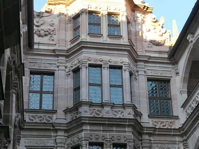 Das Pellerhaus war eines der schönsten und geschichtsträchtigsten Renaissancehäuser in Nürnberg. Es wurde leider im 2. Weltkrieg fast zerstört, nur Teile des Erdgeschosses und der Hofgalerien sind erhalten. Vor einigen Jahren wurde eine Initiative gegründet, die einen Aufbau befürwortete. 2013 war schon der erste Bauabschnitt im Hof fertig und mittlerweile kann man schon wieder viel erkennen und die alte Grandezza kommt wieder durch. Die Zweifler befürworten jetzt sogar einen Aufbau der berühmten Südfassade.