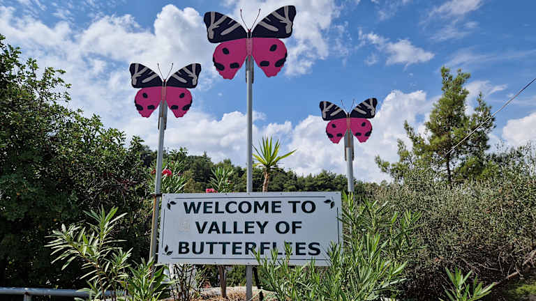 Das Tal der Schmetterlinge hat mir sehr gut gefallen. Ich war in Aden Tal Ende September. Es gab vereinzelt noch eine Schmetterlingsart zu sehen, damit hatte ich eh nicht gerechnet. Ich finde die ganze Anlage sehr hübsch angelegt. Wer nur kommt um die Schmetterlinge zu sehen und den Rest nicht wahrnimmt, ist sehr oberflächlich. Ich würde die 5€ Eintritt auch so bezahlen, weil alles sehr gut ausgebaut und gepflegt ist. Die Anlage hat entlang der Straße 3 Kostenlose Parkplätze.