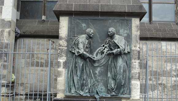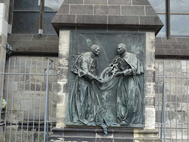 Wenn man in Köln bei der Papstterrasse auf der Domplatte ist, so sollte man sich auch einmal den Petrusbrunnen von 1870 anschauen, der unmittelbar an der Südmauer vom Dom steht.