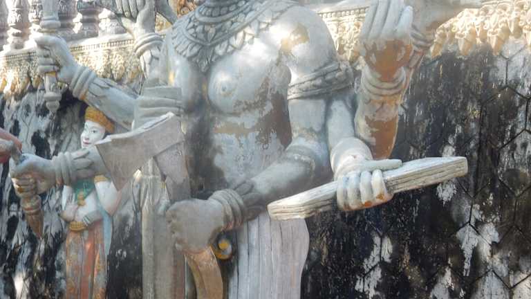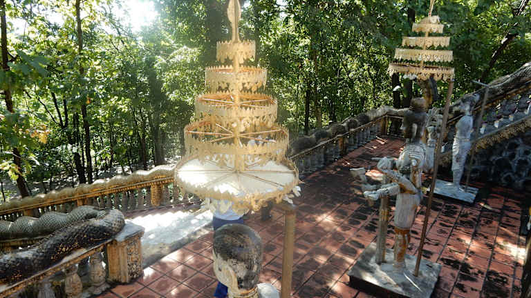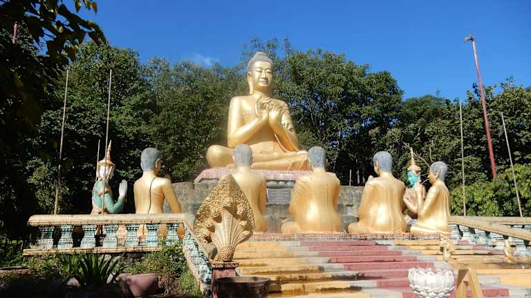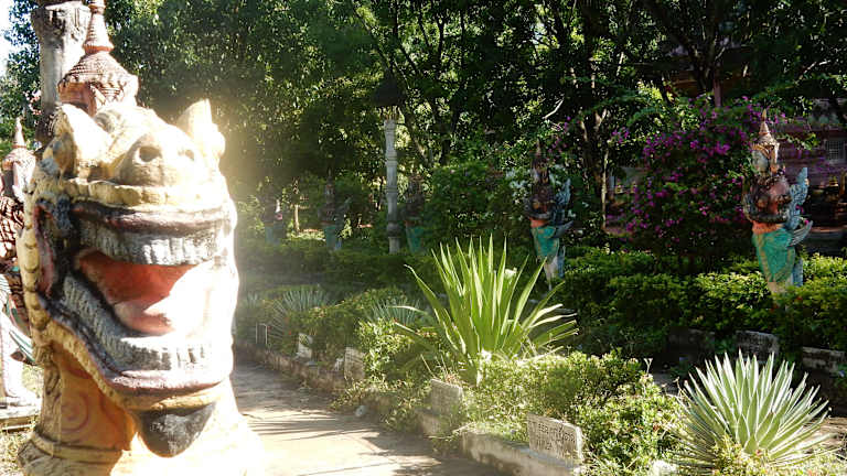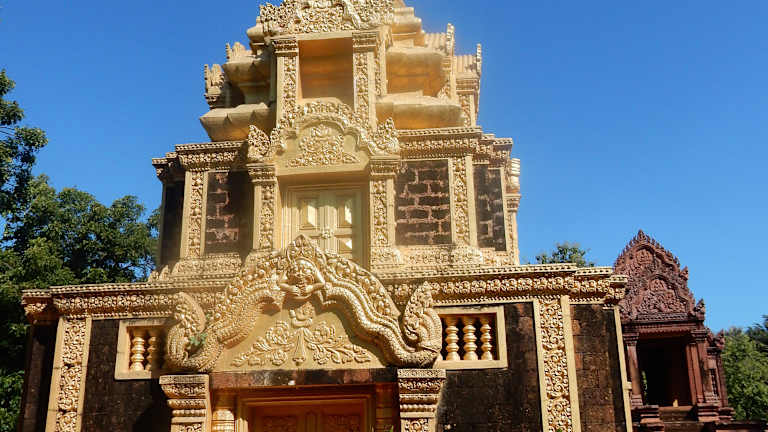 Eine landschaftlich sehr schön gelegene Tempelanlage mit detaiert gemeißelten Reliefs, lebensgroßer Buddhastatue mit seinen fünf Vertrauen, einem liegenden Buddha und dem Bayon-Tempel nachempfundenen Turm mit vier Buddhagesichtern. Die zahlreichen Affen, welche auf den Bäumen von Ast zu Ast springen, runden das Erlebnis ab.