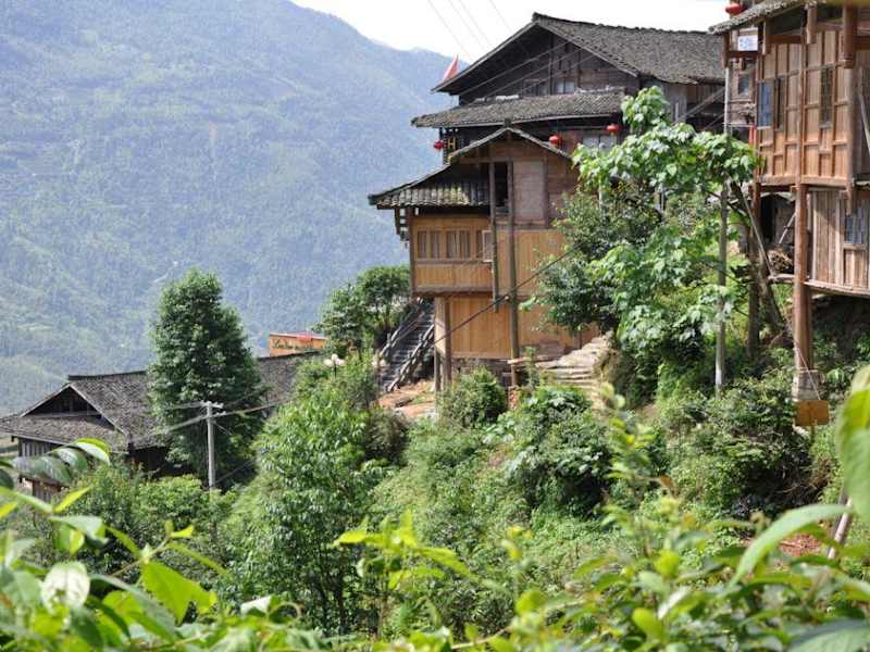 Traumhafte Landschaft. Eine gute Reisezeit ist Mitte September, da sind die Reisterrassen gelb-grün und sehen wunderschön aus. Anfang bis Mitte Oktober erfolgt die Ernte, dann ist alles abgeschnitten. Sehr schönes hölzernes Gästehaus: Liqing Guesthouse. Schönster Ausblick auf unserer gesamten China-Rundreise vom Holzbalkon auf die Reisterrassen. Wurden von einer sehr netten einheimischen englischsprechenden jungen Damen geführt. Leider ist im Paradies auch nicht mehr alles paradiesisch. Massen von Chinesen latschen durch die Reisfelder, daß unserer Dame das Herz blutete. Es werden immer neue Hotels gebaut und selbst am Ende der Welt dröhnt Karaoke aus den Bars.