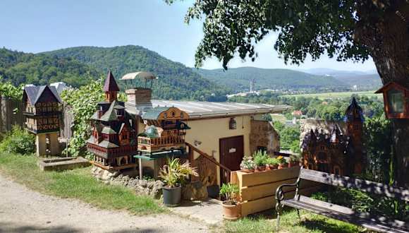 Wir sind am Ortsende von Pitten ( Parkplatz Erdbeerfeld ) in den 11 km langen Rundweg, der zu 80 % durch den Wald verläuft, eingestiegen. Zuerst geht es auf einen Hohlweg im Wald leicht bergauf, bis man auf eine größere Lichtung, mit Blick auf die Hügeln der "Buckligen Welt", trifft. Dann wird es aber interessant ! In der Nähe eines Bauerhofes muß man durch ein Gatter gehen, immer mit Blick auf ein Stallgebäude mit einen hoffentlich angebundenen Stier mit riesigen Hörnern. Bis man wieder auf einen Güterweg kommt muß man sich auf einen unmarkierten Pfad mit Brennnesseln und Dornen durchkämpfen. Vom kleinen Örtchen Leiding wandert man dann gemütlich leicht ansteigend hinauf zum Aussichtspunkt Weißjakl ( 576 m ), von wo man eine wunderschöne Aussicht auf Schneeberg und die Hohe Wand hat. Etwas steiler geht es in den Ort hinunter. Hier sollte man den Rosengarten und die am Hang aufragende Pfarrkirche und Felsenkirche ( geschlossen ) besuchen, bevor man wieder zum Ausgangspunkt zurück kommt. Der im Prinzip leichte Rundweg ist teilweise schlecht markiert. Mit GPS aber kein Problem. Wir haben ca. 3 1//2 reine Gehzeit benötigt. Höhenunterschied 350 Meter.