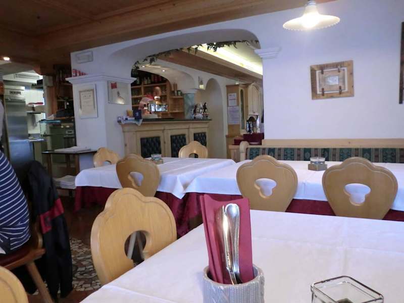 Die Pizzeria Caterina ist im Zentrum des Wintersport- und Sommerortes Corvara im Alta Badia in Südtirol ansässig. Die Karte weist eine Vielzahl der klassischen Pizzen auf. Auf meinen Wunsch fertigt der freundliche Pizzabäcker Gianni immer eine Calzone Speziale mit viel Gorgonzola Käse an. Bei jedem Besuch in Corvara komme ich nicht umhin, mir diese Calzone zu bestellen.