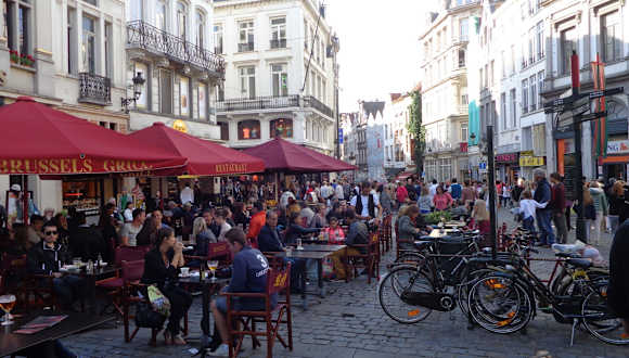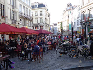 Man läuft direkt über die Grasmarkt bzw. Rue de Marche aux Herbes auf den Charles du Buls Platz zu. Mitten auf dem Platz befindet sich der Charles du Buls Brunnen. Denkmal zu Ehren von Charles du Buls, einem ehemaligem Bürgermeister von Brüssel aus dem Jahre 1881.Der Platz ist von Lokalen umsäumt mit herrlichen Außenbereichen. Zum Zeitpunkt unseres Besuches in Brüssel befand sich ein kleiner Markt mit verschiede nen Ständen von Modeschmuck auf dem Platz.Auch Straßenmusiker finden hier ihren Platz. Schöner Platz mit Atmosphäre.
