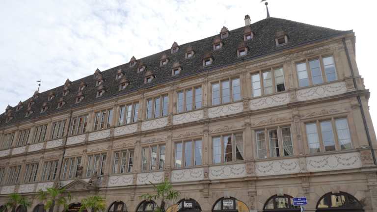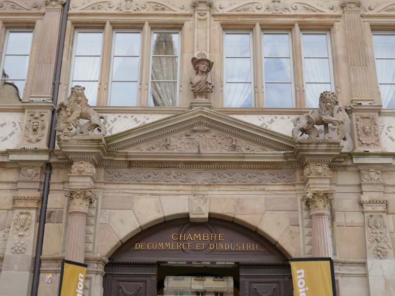 Diesen Platz kann man schnell von der Kathedrale erreichen, auch eine Straßenbahn, hier TRAM genannt ,hält in der Nähe, man geht von der Haltestelle Langstross / Gran Rue hin zur Straße Rue Gutenberg, dann wenige Schritte weiter durch diese Straße und dann nach links, sie sind dann schon dort am Platz. Etwas ist erstaunlich, während des ganzen Jahres steht dort ein Kinderkarussel, Familien mit Kindern kommen sich vor, wie auf einer rheinischen Kirmes. Aber die wichtigsten Dinge für die Erwachsenen sind das riesige Gebäude, welches man auch den "Neuen Bau" nennt und das Gutenberg Denkmal. Das Gebäude wurde aber schon 1582 bis 88 erbaut, damals als Rathaus, heute ist es die Handelskammer.