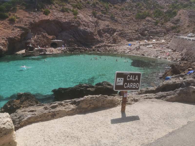 Hier kann man auch in den Sommermonaten fast allein am Strand liegen und ungehemmt der Freikörperkultur nachgehen. Man muss natürlich den Weg von ca. 40 min auf sich nehmen, dieser ist aber nicht sehr beschwerlich, sondern geht immer an der Küste entlang an verschiedenen kleineren Stränden vorbei. In Colonia de Sant Jordi kann man in der Nähe vom Strand (Hafen) gut parken. Ist man am Strand, geht man den angelegten Weg nach links entlang und kommt zum bewachten Strand Es Dolc, mit Sonnenliegen. Dort geht man weiter den "Trampelpfad" entlang an den Stränden C'an Curt und Es Dofi vorbei. Manchmal muss man sich hinter einer Fischerhütte auf einem schmalen Weg durchschlängeln. Ist man am Strand Es Dofi angelangt, kann man schon einen ersten Blick auf den wunderschönen Strand Es Carbo werfen. Jetzt sind es nur noch ein paar hundert Meter und man kann alle Sachen fallen lassen und den tollen Strand und das Meer genießen. Zu unserer Reisezeit Mitte Juni war der Strand nicht sehr voll. Der nächste Besucher lag etwa 50 Meter weiter, man hatte also seine Ruhe. An manchen Tagen waren wir fast ganz allein.