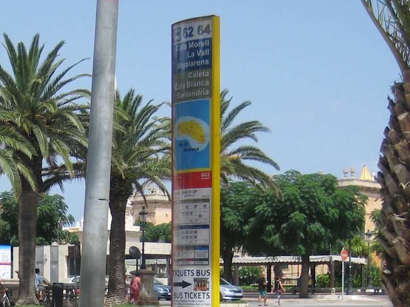 An der Plaça dels Pins (zur Seite der Plaça des Born und von dieser nur wenige Meter entfernt) findet man den Busterminal für den Nord- und Südwesten Menorcas. Ab dort fahren die 60er Busse – nach Sa Caleta, Cala Santandria, Cala Bosc, Xoriguer, Cala Morell, usw. Die Busse fahren sehr regelmäßig und pünktlich, eine längere Wartezeit ist nicht gegeben. Wichtig: Die Tickets müssen am Tickethäuschen gekauft werden, nicht beim Busfahrer - außer man kommt im letzten Moment vor der Abfahrt an. Dann macht der Busfahrer schon einmal eine Ausnahme :-) Anmerkung zum Busterminal der oben genannten Buslinien: In meinem Dumont-Reiseführer von 2013 findet sich die Info, dass die oben erwähnten Buslinien ab der Plaça de Menorca fahren. Dies wurde demzufolge geändert. Ob die Busse nach Mahón, usw. – wie in diesem Reiseführer zu lesen und auf der dortigen Karte zu sehen ist - ab der anderen (!) Seite der Plaça dels Pins fahren, kann ich leider nicht sagen. Aber diesbezüglich erhält man gewiss Auskunft am Tickethäuschen.