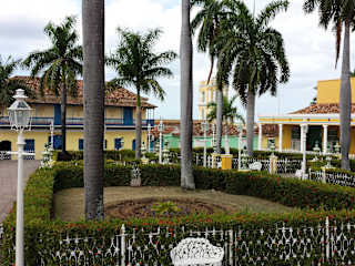 Die als kleiner Park mit kolonialzeitlichen Laternen, kleinen gusseisernen Bänken und dekorativen Blumenschalen angelegte "Plaza Mayor" von Trinidad liegt im historischen Zentrum der Stadt. Der am Anfang des 19. Jahrhunderts geschaffene Platz besteht aus vier symmetrischen bepflanzten Rechtecken, in deren Mitte eine Marmorskulptur der Muse Terpsichore steht. Er wird gesäumt von den wichtigsten Sehenswürdigkeiten Trinidads: - Im Osten die "Iglesia Parroquial de la Santísima Trinidad" und das "Museo Romántico" im Palacio Brunet, - Im Süden das Museo de Arquitectura Trinitaria im Casa de Sánchez Iznaga, - Im Westen das "Museo de Arqueología Guamuaya" im Palacio Padrón. Das historische Zentrum von Trinidad, wo sich auch die Plaza Mayor befindet, wurde im Jahr 1988 von der UNESCO zum Weltkulturerbe erklärt.