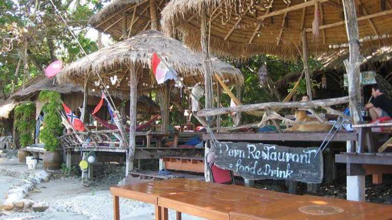 Typisch Thai Das Restaurant von Porns Bungalows, in dem neben Thailändischen Spezialitäten auch Europäisches Frühstück serviert wird, besticht nicht nur durch die hervorragende Qualität der Speisen und dem guten Service, sondern auch durch den einzigartigen Charme – nicht von ungefähr ist es seit Jahren das am meisten besuchteste des ganzen Kai Bae Beachs. Eine große offene Holz-Terrasse mit zwei überdachten Pavillons wurde direkt zum Meer hin gebaut. Schon vor Jahren wurden die Stühle entfernt und die Tische durch solche mit kurzen Tischbeinen ersetzt. Gesessen wird dort auf den Thailand-typischen Dreieckskissen. Diejenigen, denen die Thailändische Art des Sitzens unbequem erscheint, können im hinteren Teil des Restaurants wie gewohnt an „normalen“ Tischen und Stühlen sitzen - oder in einer der Hängematten ihre gekühlten Getränke genießen. Direkt vor dem Barbeque, an dem jeden Abend Fleisch, Kartoffeln, Maiskolben, frische Fische, Garnelen, Tintenfische und andere Meeresfrüchte-Spezialitäten vor Ihren Augen zubereitet werden, gibt es am Strand weitere Sitzgelegenheiten, sodass auch dort in angenehmer Atmosphäre gegessen und getrunken werden kann. An der gemütlichen Bar, die neben dem Restaurant ebenfalls direkt am Strand errichtet wurde, kann man sich an einer großen Auswahl Longdrinks, Cocktails und anderen alkoholischen Getränken. Von hier aus kann man dann wunderbar den Sonnenuntergang beobachten.