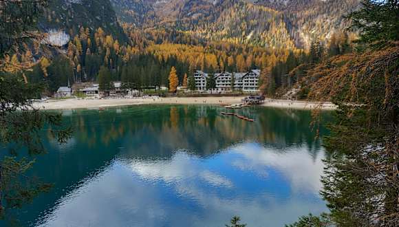 Er ist das Juwel unter den Dolomitenseen: Der Pragser Wildsee. Am nördlichen Dolomitenrand, in einem mächtigen Felskessel gelegen, breitet sich der See wie ein Fjord Richtung Süden aus. Überragt wird er von der imposanten Nordwand des Seekofels – ein Anblick, der Ihnen den Atem verschlagen wird. Der Pragser Wildsee kann - ausgehend vom Startpunkt, dem historischen und denkmalgeschützen „Hotel Pragser Wildsee” - zu Fuß in knapp anderthalb Stunden umwandert werden. Verfasst von HolidayCheck