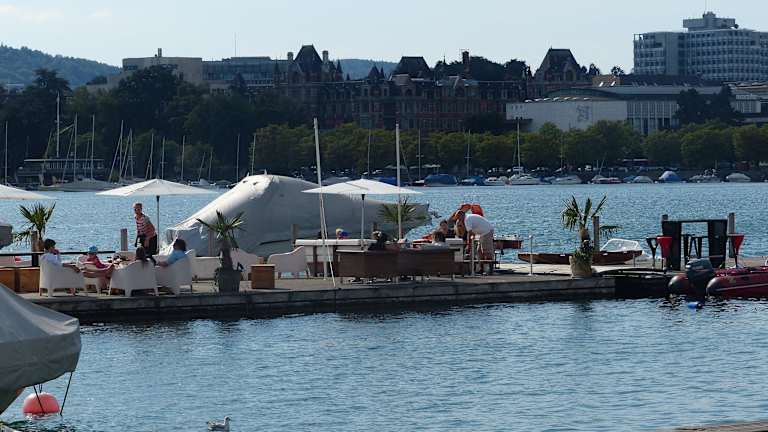 Die Pumpstation liegt genau am Zürichsee, im Hintergrund das Opernhaus. Wir liefen zur 1. Orientierung durch Zürich und fanden den Platz hier sehr einladend. Der Service war freundlich und der Ausblick auf den See wirklich klasse. Die großen Schirme und Bäume bieten viel Schatten zum Sitzen. Wir haben allerdings nicht dort gegessen, sondern nur etwas getrunken. Alelrdings sahen die Sachen auf den Nebentischen auch sehr lecker aus.