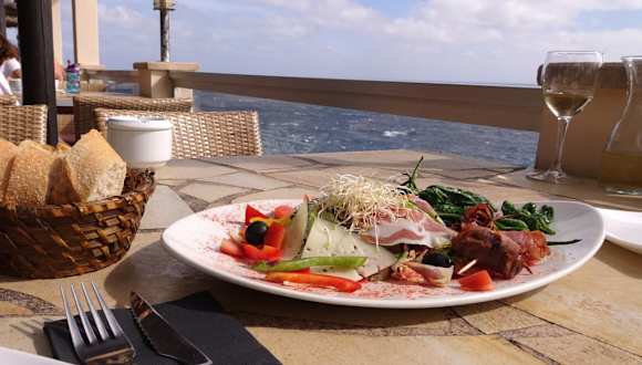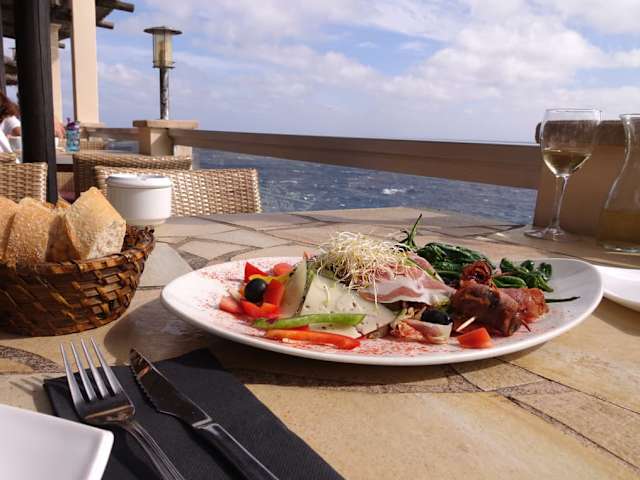 Etwas ausserhalb der schönen Bucht liegt dieses Restaurant in der Carrer Tomarinar an einer Stelle die einfach kaum zu überbieten ist. Direkt über dem Meer, atemberaubend schön kann man hier sitzen. Da das Lokal an einmaliger Lage liegt, könnte man meinen daß auch die Speisen gut sind. Aber weit gefehlt. Wir haben dann eine Platte für 2 Personen im Wert von 14.50 bestellt, leider war die Platte etwas "sehr dünn " oder besser gesagt, armselig belegt. Für 2 Personen waren darauf 4 Scheiben Schinken, 3 Röllchen Speck mit Datteln und viel Gemüse und Salat darauf. Ich schlage vor der Inhaber sollte sich einmal solch eine Tapasplatte in der Bar Chez Camille in der Stadt Palma ansehen, dort gibt es 4 Würste, 6 Scheiben Schinken, 4 Rollen Speck mit Datteln und 4 Hühnerschlegel, zum Glück aber kein Gemüse, daür aber Allioli mit Baguette. Natürlich ist das nur ein Vorschlag, dann gäbe es nicht so viele Reklamationen hier bei den Bewertungen.