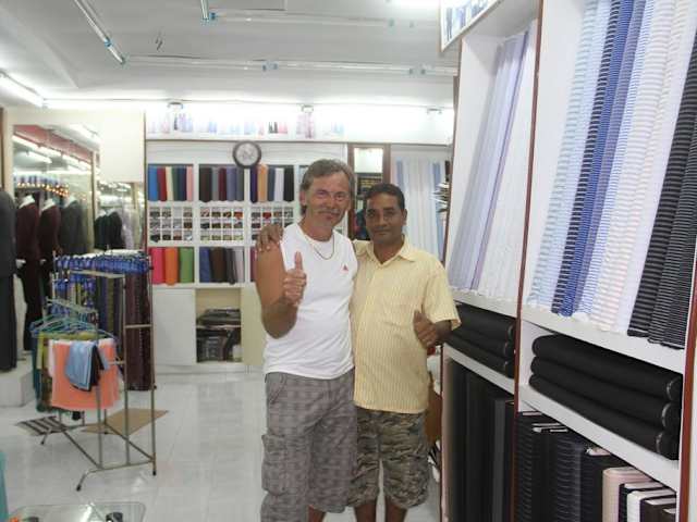 Der Schneider Dee Raj Fashion ist uns dadurch positiv aufgefallen, dass er nicht so aufdringlich wie die meisten anderen in dieser Gegend war. Wir haben dort ein Kleid mit chinesischen Kragen maßschneidern lassen, und waren mit dem Service und der Qualität zufrieden. Der Preis betrug nach kurzem Handeln 3000 Baht (60Eur), nachdem der Schneider zuerst 5000 Baht verlangt hatte. Ob dieser Preis letztendlich fair war konnten wir nicht beurteilen - jedenfalls ist das Kleid gut gelungen.